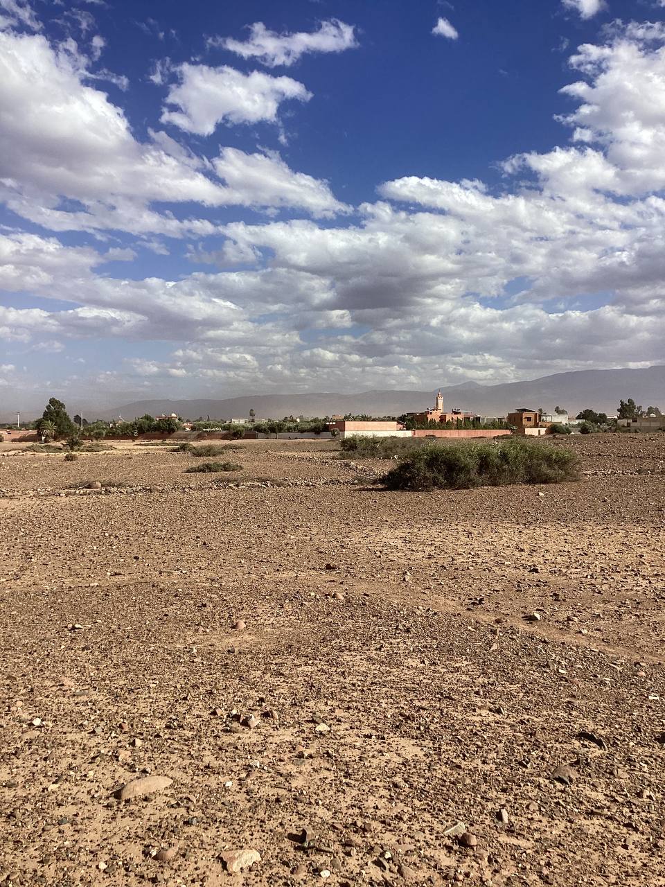 This titled 2-hectare plot enjoys a strategic location just 18 km from Marrakech, directly on the Ourika Road, with unobstructed views of the Atlas Mountains.
